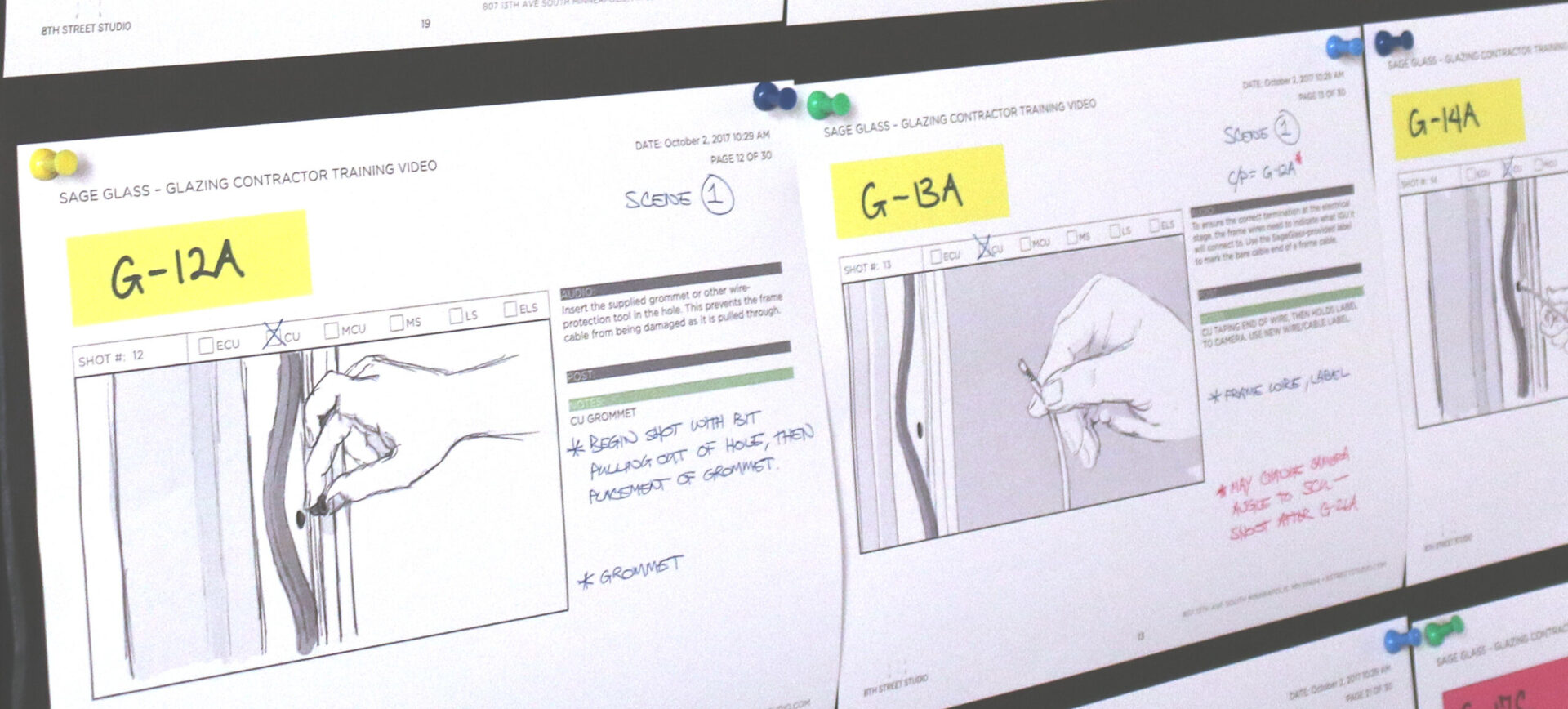At Studio Eight, our photographer and videographer, Robert Olding, uses storyboards to present his ideas to our creative team and clients. During a recent project for SageGlass, Robert’s storyboards efficiently and effectively portrayed his visions for each video. That way, we were able to get the go-ahead to build the set, hire actors, and so forth. And by the time we began filming, there were few surprises. When an issue did arise with the SageGlass videos—such as how to create new versions in different languages—our Studio Eight team simply modified the existing storyboards. This way, our storyboards provided the video editor with instructions in English, along with the visuals, to determine which foreign-language narration should accompany each shot.